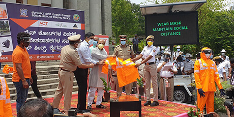 The rain-suits were given to the traffic police in the presence of Honorable Shri. Basavaraja Bommaih, Home Minister of Karnataka and Bala Malladi, Chief Executive Officer, Atria Convergence Technologies Ltd., Kamal Pant, Police Commissioner, B R Ravikanthe Gowda IPS, Joint Commissioner of Police (Traffic), and other senior officers.